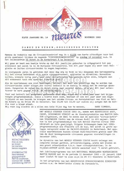 2221 journals We gather documents coming from circuses, but also related to circus, as this issue of the “Circus nieuws Brief” journal, published in 1993 |