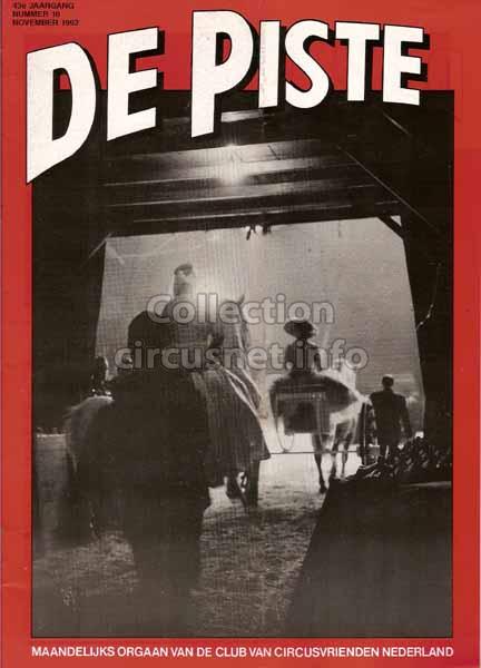 2237 revues Nous conservons ce qui vient des cirques, mais aussi ce qui en parle, comme les revues, tel cet exemplaire de “De Piste” datant de 1992 |