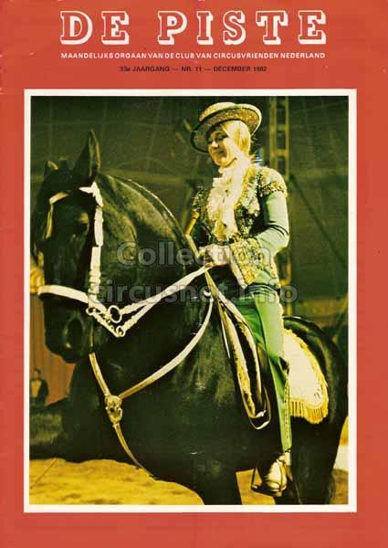 2237 revues Nous conservons ce qui vient des cirques, mais aussi ce qui en parle, comme les revues, tel cet exemplaire de “De Piste” datant de 1982 |