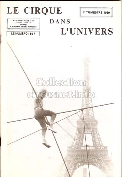 2208 journals We gather documents coming from circuses, but also related to circus, as this issue of the “Le Cirque dans l'Univers” journal, published in 1989 |