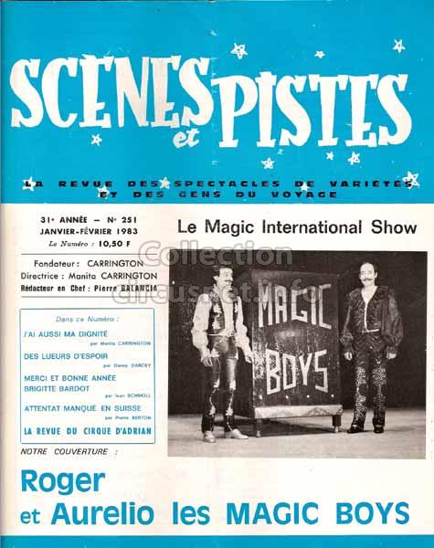 2239 revues Nous conservons ce qui vient des cirques, mais aussi ce qui en parle, comme les revues, tel cet exemplaire de “Scènes & Pistes” datant de 1983 |