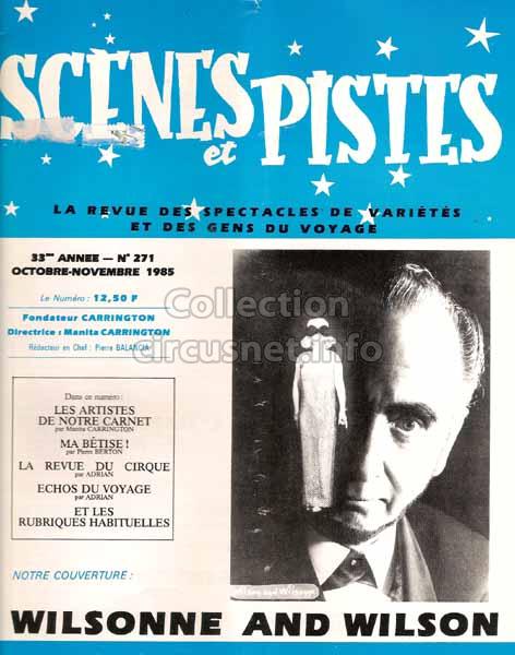 2211 journals We gather documents coming from circuses, but also related to circus, as this issue of the “Scènes & Pistes” journal, published in 1985 |