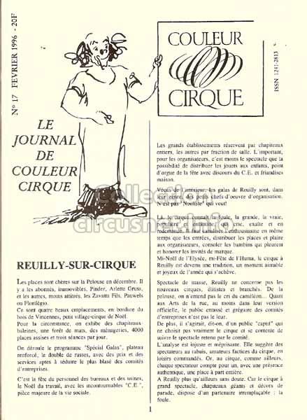 2221 revues Nous conservons ce qui vient des cirques, mais aussi ce qui en parle, comme les revues, tel cet exemplaire de “La Revue Couleur Cirque” datant de 1996 |