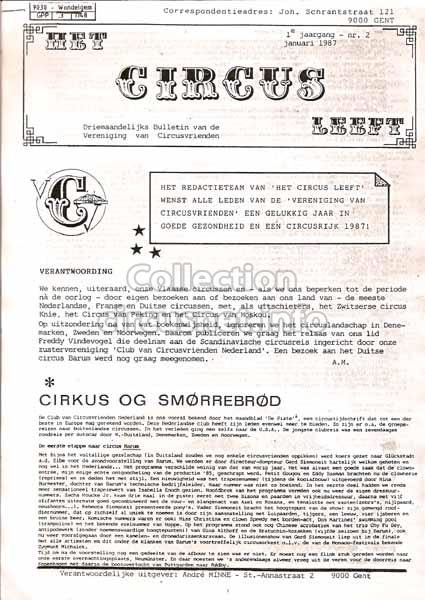 2224 revues Nous conservons ce qui vient des cirques, mais aussi ce qui en parle, comme les revues, tel cet exemplaire de “Het Circus Leeft” datant de 1987 |