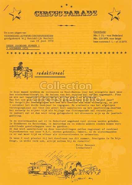2210 journals We gather documents coming from circuses, but also related to circus, as this issue of the “CircusParade (NL)” journal, published in 1972 |