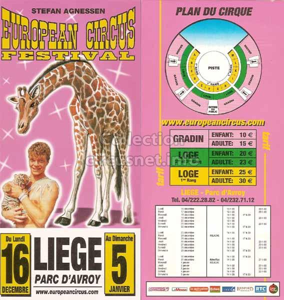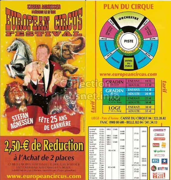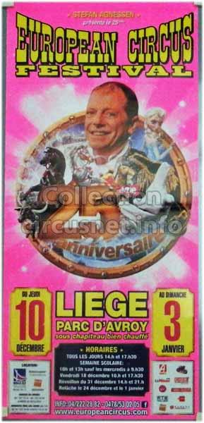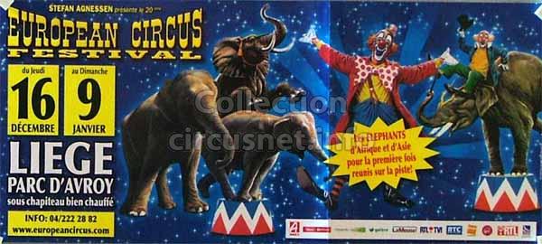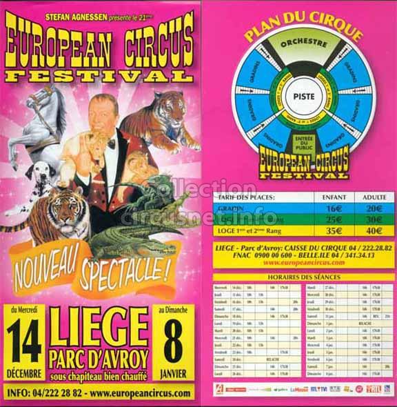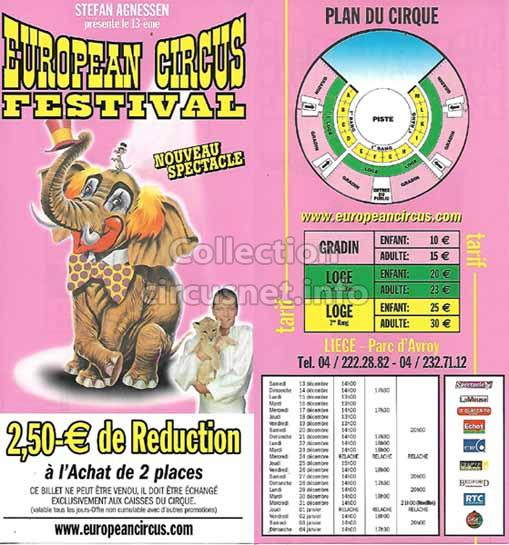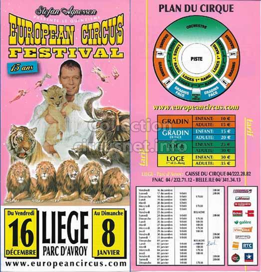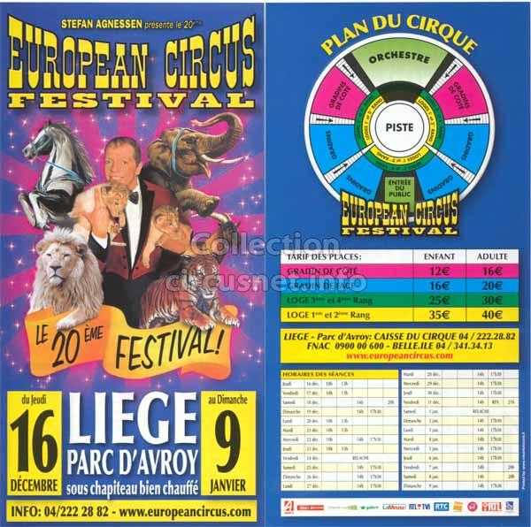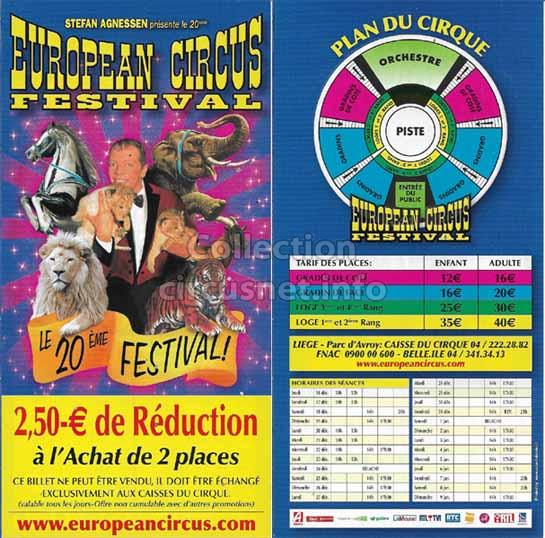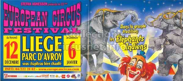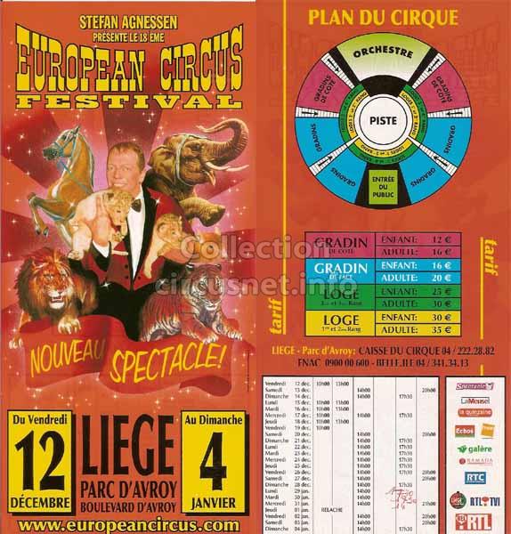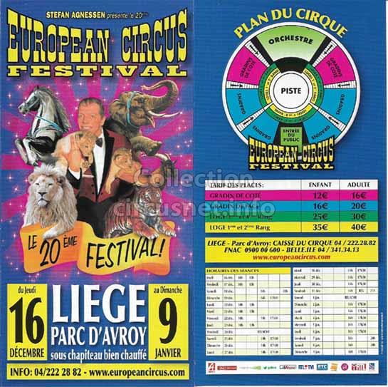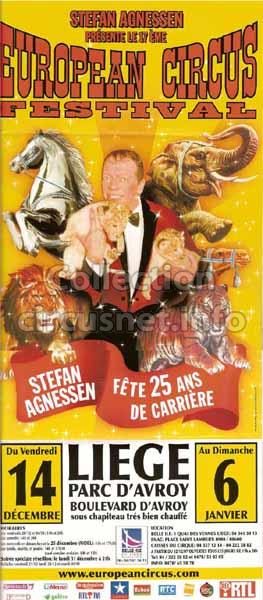 1995 - /96 - 5éme Festival - Liège |  1996 - Cirque Stefan Agnessen (saison) |  1996 - /97- 6éme Festival - Liège |  1997 |
