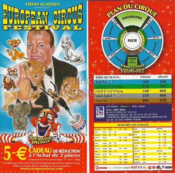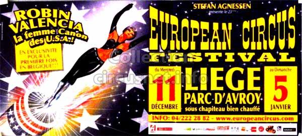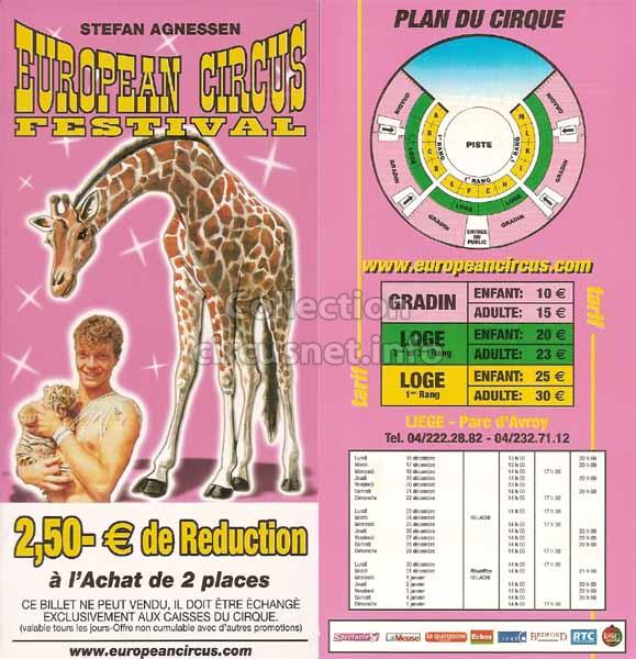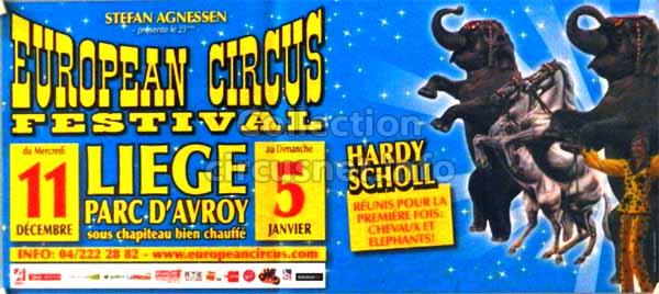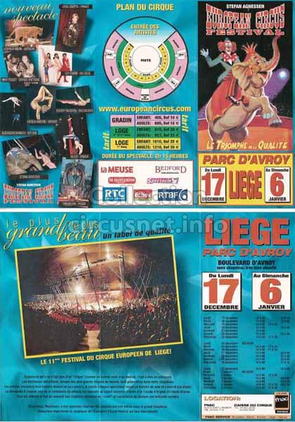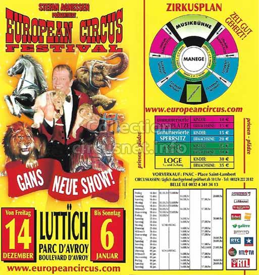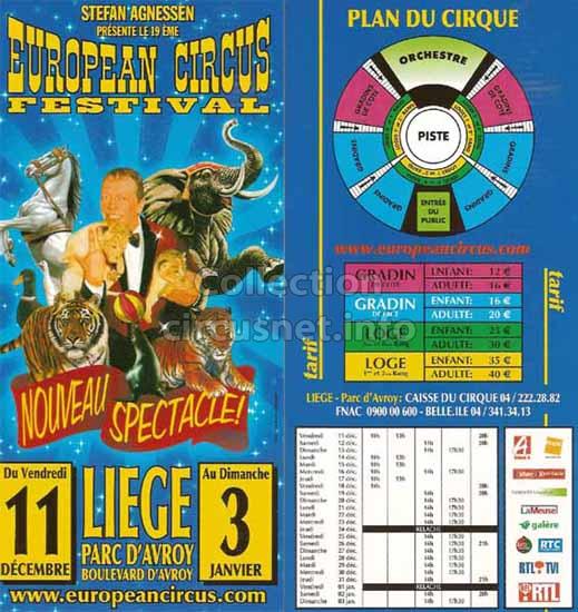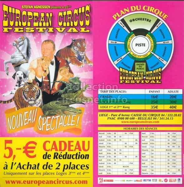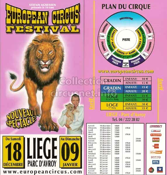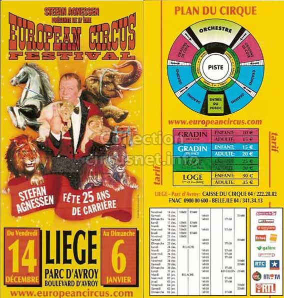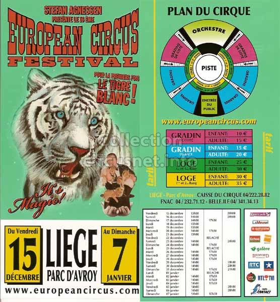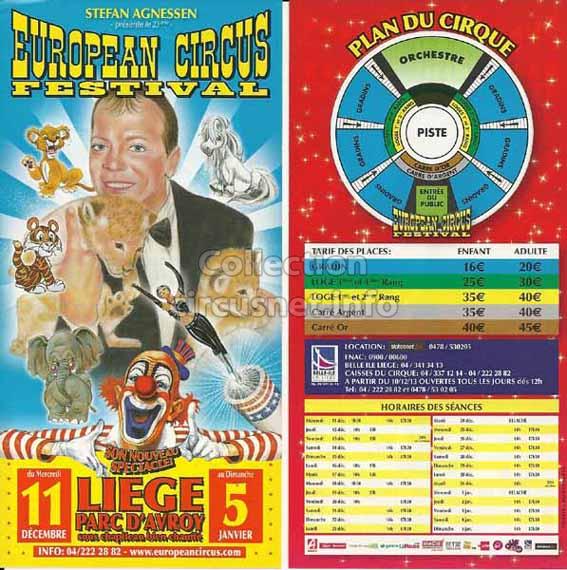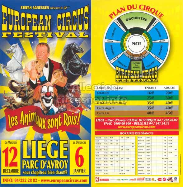 1995 - /96 - 5éme Festival - Liège |  1996 - Cirque Stefan Agnessen (saison) |  1996 - /97- 6éme Festival - Liège |  1997 |
