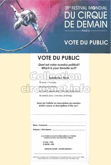 2017 - 38e Festival (recto/verso) |  2018 - 39e Festival (Bulletin de vote) (recto/verso) |  2018 - 39e Festival (recto/verso) |  2019 - 40e Festival (recto/verso) |