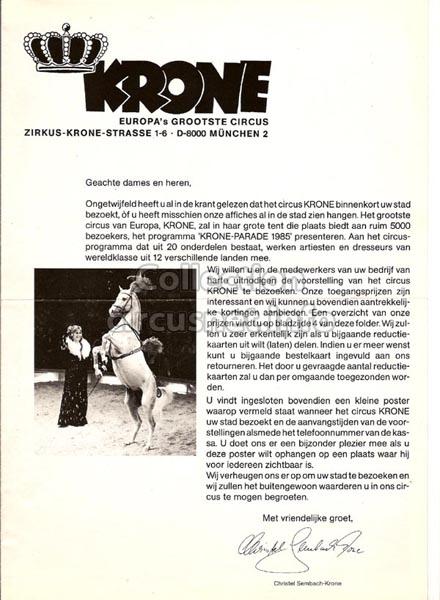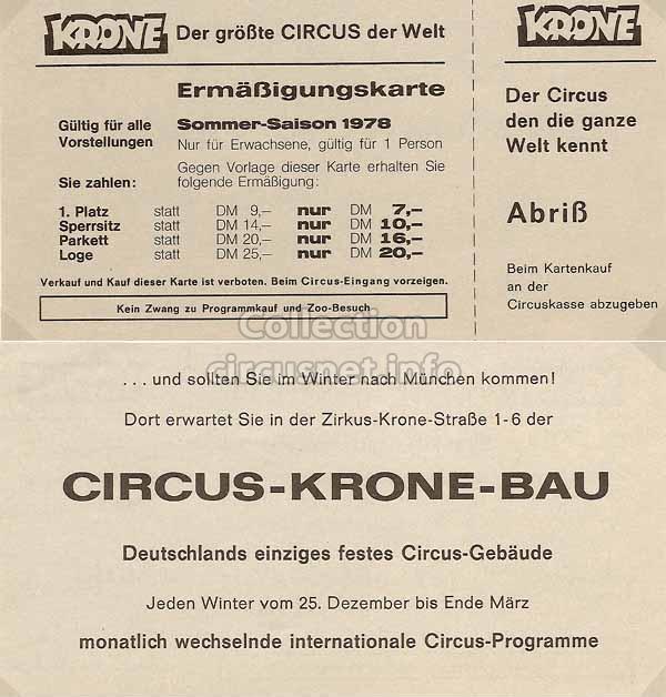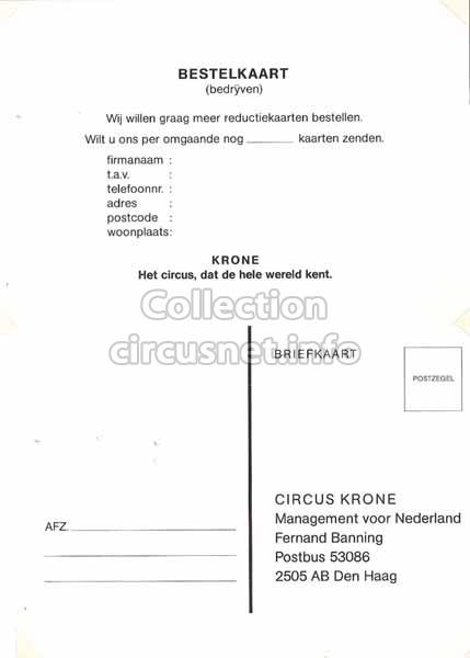 Krone (Photo) |  Krone (Autocollant) |  Circus Krone (Carte postale) |  Krone (Enveloppes) |